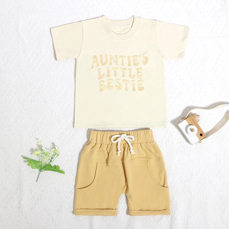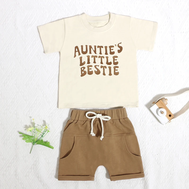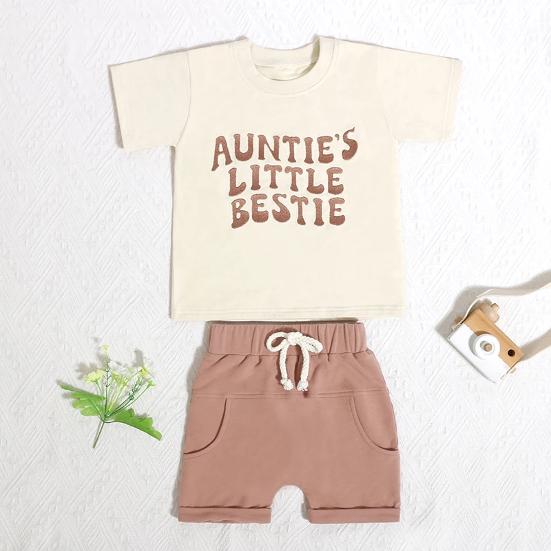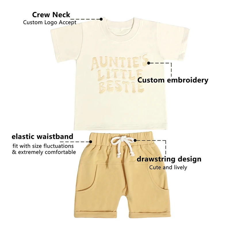 Professional Made Baby Crew Neck Short Sleeve Set Summer Elastic Waistband Short Pant Kid Sportswear Girls Cloth